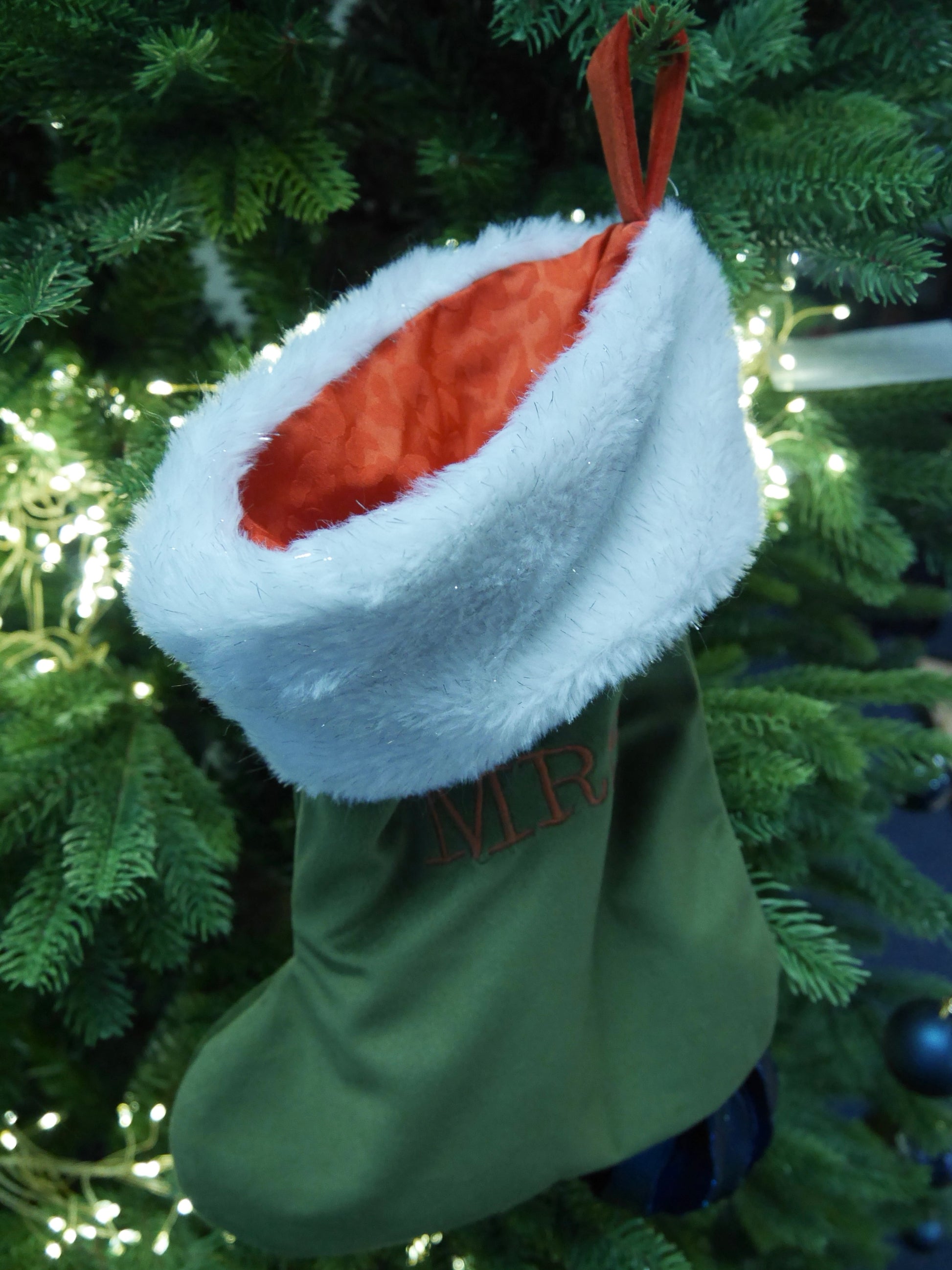 Personalised Christmas Stockings. Our velvet stockings are available in a range colours, and can be embroidered with your chosen name, phrase or initials.